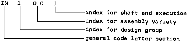 Designs are given code letters IM in the same manner as degrees of protection and coolants. The letters also indicate the design group, assembly variety and shaft end execution.
