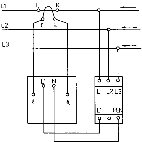 - Semi-indirect correct-voltage measurement For a voltage of up to 380 V and currents of more than 6 A.