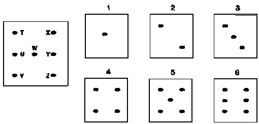 No. 2 For a display of the figures 1-6, in the well known spot configuration of a game die, design the code conversion circuit. At the input the figures are binary coded.