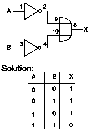 AND operation: The output supplies an high (1) signal if to all inputs high (1) signals are applied.
