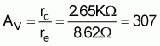 The first step in calculating the voltage gain is to estimate the ac emitter resistance (re).