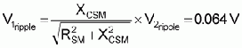 The ripple voltage can be calculated according to the voltage division at Csmooth and Rsmooth