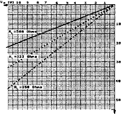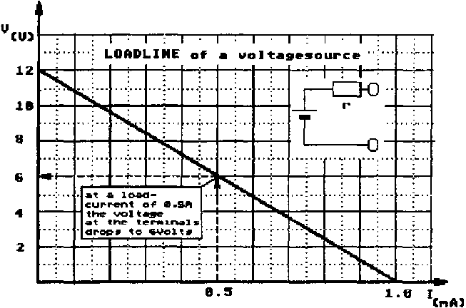 If we return now the characteristics of the internal resistor back to our field, we can easily read from it, how much voltage will be found at different load resistors.