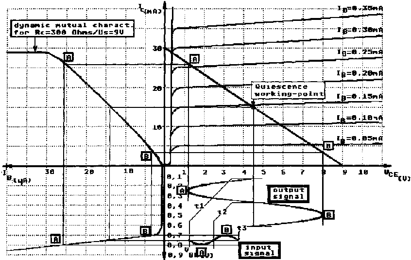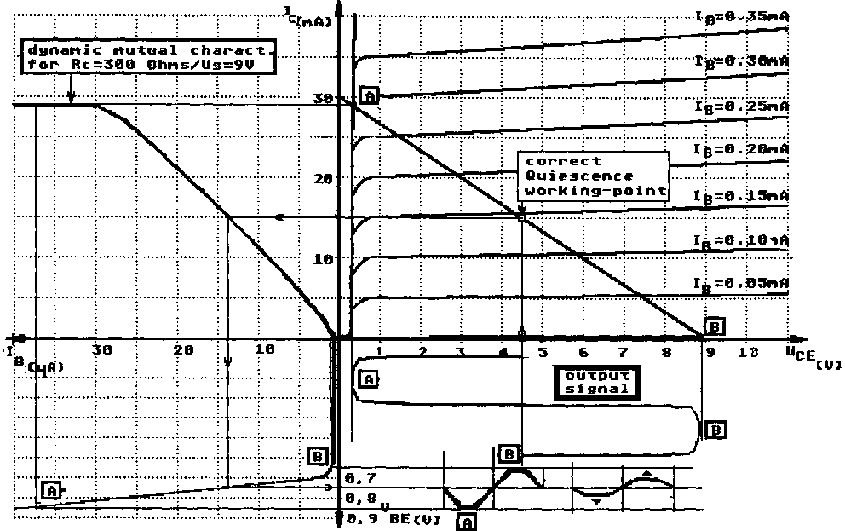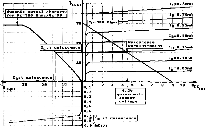 REPRESENTATION OF THE QUIESCENT-POINT IN A FOUR-QUADRANT-CHARACTERISTICS OF THE AMPLIFIER TRANSISTOR.