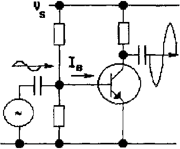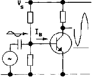 If the input-signal would be directly connected to the base of our amplifier transistor as shown in fig. 142d we would find only a change of the output voltage during the period between point 1 and 2 as long as the input signal is above 0.6 Volts. This would not be fitting to the precondition developed for a class A amplifier in the last chapter.