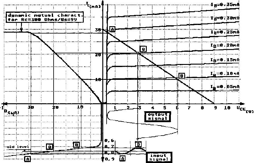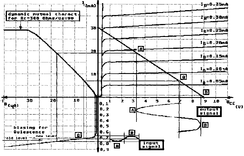 We know now the basical components of a class A amplifier and it is possible to have a closer look to the effects in this circuit when a signal is injected to the input of the circuit of fig. 147 (page 43).