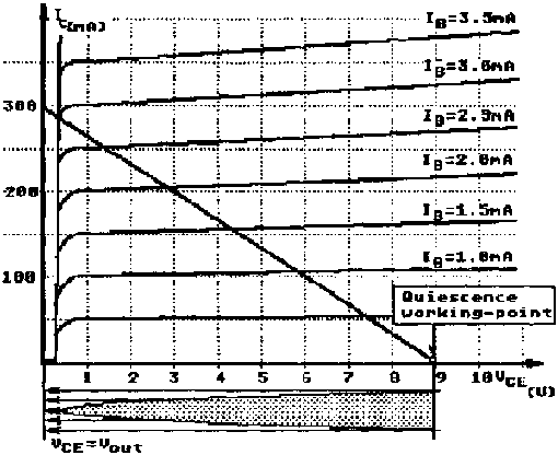 In very cheap and small transistorradios we find sometimes - as an exception - class A amplifier even for the power stage, but operating only an earphone or a very tiny loudspeaker. The reason why is easy to see if we have a closer look to the quiescent point.