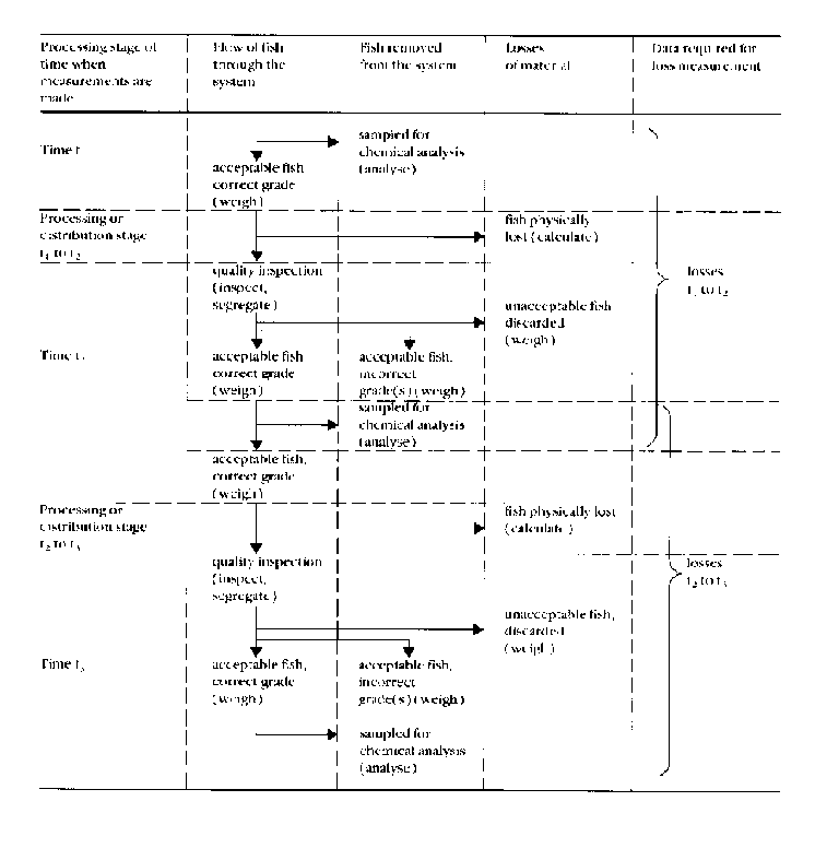 The types of fish and the products, whether wet and/or cured, to be evaluated, must be specified. The types of loss, whether physical and/or economic, and the number of geographical locations to be sampled must also be considered. Careful thought should be given to this last topic, as small a number of sites w ill not give results which are representative for an area or region, and too large a number will greatly increase the workload involved.