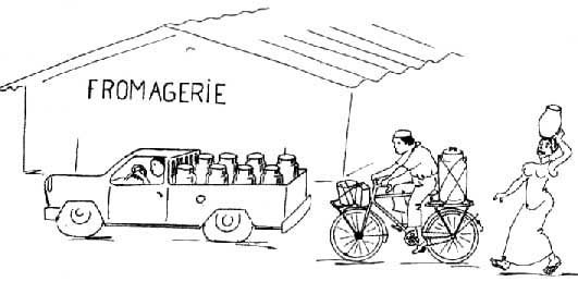 · Dans la pratique, cette deuxième phase n'est pas toujours mise en place, soit parce qu'il n'y a pas de possibilité d'effectuer un suivi efficace des éleveurs, soit parce que les responsables de la fromagerie jugent plus simple de continuer à fonctionner avec de la poudre de lait. Il est donc très important, lorsqu'on monte un projet de petite fromagerie, de programmer effectivement cette seconde phase de passage au lait local, et de la mettre en oeuvre. Même si c'est parfois plus difficile que de se contenter de fonctionner à la poudre de lait, c'est une condition importante de l'insertion réelle de la fromagerie dans le tissu économique local.
