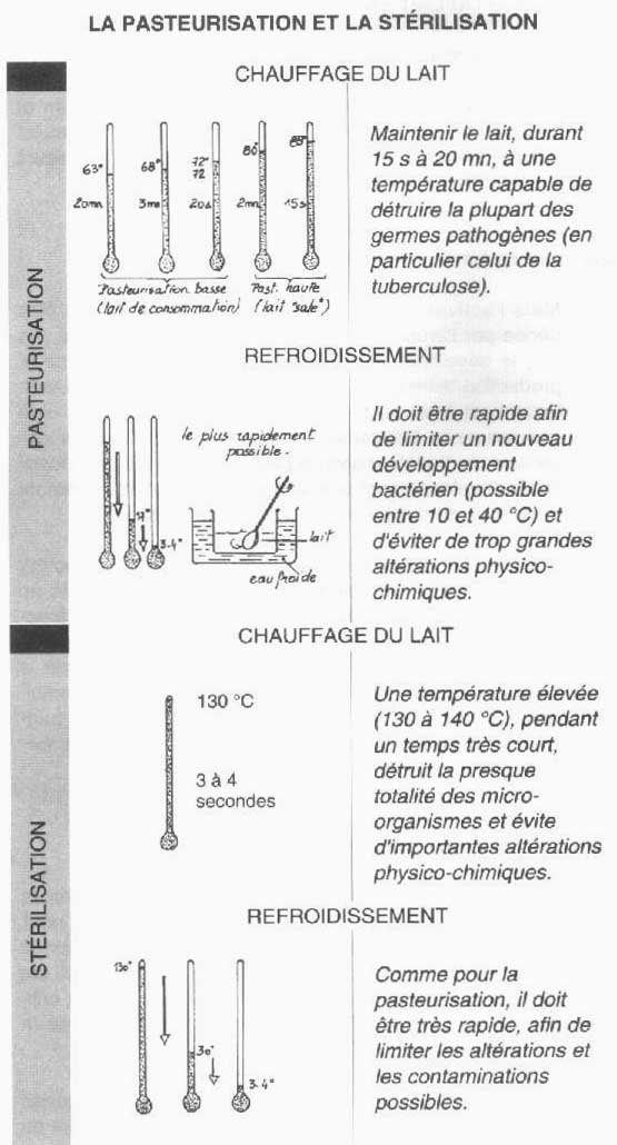 Un traitement par la chaleur (traitement thermique) permet de conserver le lait plus longtemps, de quelques jours à quelques mois. Ce traitement thermique détruit en partie (pasteurisation) ou en totalité (stérilisation) les micro-organismes responsables de l'altération du lait. Pasteurisation ou stérilisation sont obligatoires avant toute transformation du lait. Ils ont pour objectif la stabilisation et la décontamination du lait.