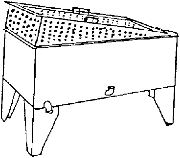 - un panier ou treillis métallique (figure 23), ne comportant ni fer ni cuivre, muni d'un système de soulèvement pour les grandes capacités. Dans le cas des unités artisanales, le panier peut être fabriqué en matériaux locaux (osier par exemple);- un récipient de cuisson, muni ou non d'un couvercle. Ce dernier est cependant nécessaire, dans le cas d'un blanchiment ou d'une cuisson à la vapeur, pour maintenir une atmosphère suffisamment riche en vapeur et éviter un refroidissement des légumes au contact de l'air;