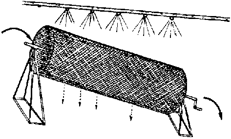 - Laveur à tambour rotatif aspergé par un système de jets. La rotation est assurée manuellement ou à l'aide d'un moteur (figure 2).