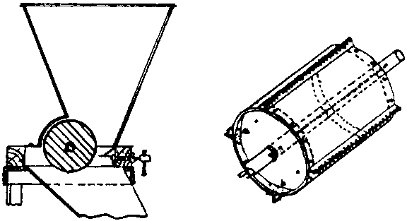 - cylindre rotatif muni longitudinalement de lames qui coupent les légumes provenant d'une trémie (figure 10).