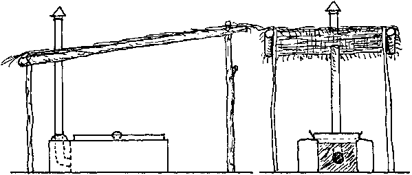 - garification: poêle en fonte, en tôle ou en terre cuite d'environ 60 cm de diamètre posée sur un petit foyer en terre fermé sur trois côtés (voir la figure 46);