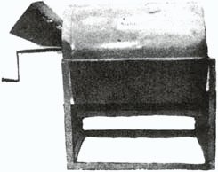 Dès lors qu'un groupement de paysans souhaite accroître sa production de gari pour la porter à quelques centaines de kilos par jour, il faut soit multiplier le matériel traditionnel ou amélioré que l'on vient de décrire, soit accroître la capacité de ces appareils et mécaniser un plus grand nombre d'opérations. Le choix des matériels spécialement conçus pour transformer le manioc en gari est très limité. La figure 47 regroupe un ensemble d'appareils actionnés mécaniquement ou manuellement, construits au Libéria par la Société Wahdwa et conçus pour produire 125 kg de gari par heure. Certains de ces appareils, comme la peleuse, la râpe et le broyeur, sont entraînés par des moteurs à combustion ou électriques, tandis que les autres appareils (tamis, calibreuse et foyer de garification) peuvent être actionnés manuellement ou mécaniquement. Selon les cas, l'ensemble de ce matériel peut coûter 35.000 à 40.000 dollars (valeur mars 1985). Ce prix s'entend c.a.f.1 port de l'Afrique occidentale.