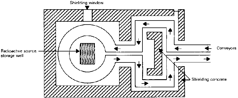 (b) Cobalt 60, an artificial isotype emitting '-rays at energy levels of 1.17 and 1.33 MeV, has a half life of 5.3 years, losing activity at the rate of about 1 per cent per month. (A typical layout of a cobalt 60 irradiation plant is illustrated in Figure 12.)