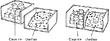 There are various forms of ice crushed, block, broken tube, flake and others. It is best to use crushed ice with pieces of different sizes to allow rapid chilling at first and then continued cooling, though none of the pieces should be larger than 6 cm.