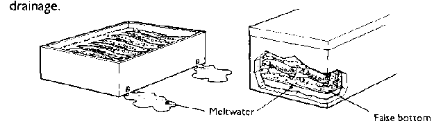 Meltwater carries blood, slime and bacteria. It must be able to drain awe, from the bottom of the box or container without coming into contact with the fish. This can be done by installing a false bottom in the boat or box; in its simplest form this can be several planks at the bottom of the boat to raise the fish. Fish boxes should have holes in the sides to allow