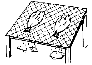 A drying rack with a sloping top is suitable for split fish. This allows any water which collects in the gut or gill cavities to drain away. To prevent the fish sliding down the slope they are hooked on to the supporting material by their gill covers.