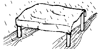 Figure 3 shows a drying rack that can be quickly built and taken apart. It is made of bamboo or branches.