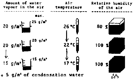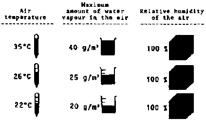As already mentioned, the saturation moisture content of the air depends on the temperature, i.e. the higher the temperature of the atmosphere the more moisture it is able to absorb: