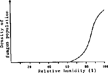 When the stored produce is moist, there is a danger of fungi and mould development. Fungi start growing at an r.h. of above 65-70%. The safe moisture contents for foodstuffs for long-term storage are therefore those which provide an equilibrium at a r.h. of 65-70%.
