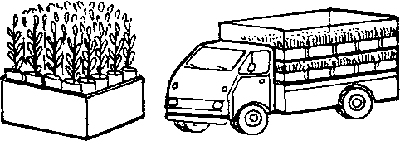 Transport from the nursery to the planting site is often a limiting factor, slowing the progress of the planting work. Simple metal structures with several shelves, as shown in the illustration on the preceding page, can multiply the capacity of trucks and trailers several fold.