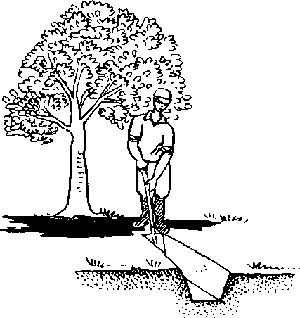 Bare-rooted seedlings which cannot be planted in a few days must be healed-in close to the planting site to minimize later transport. "Healing-in" means temporarily putting bare-rooted seedlings in moist soil, under shade, until they can be used for planting. Healing-in should be avoided but it may sometimes be necessary.
