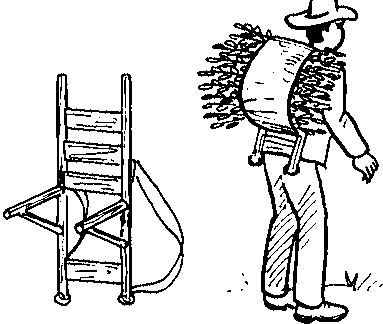 Yokes are less convenient than backpacks, but it is still far easier to use one than to carry the plants with ones arms. Yokes are sticks of a suitable shape put across the shoulders. The load is suspended on strings at each end.