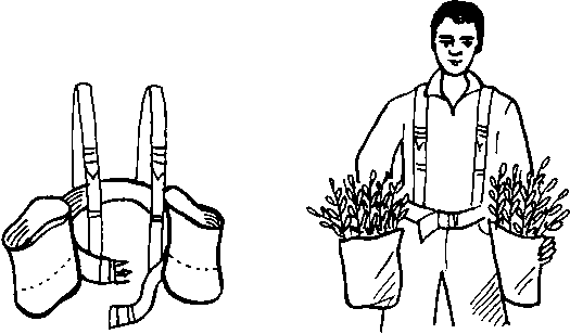A shoulder-carried seedling container or basket will leave the hands free for planting. The harness should have a well-padded belt and shoulder straps. They should be adjustable to allow the weight of the seedlings to be distributed between the shoulders and the hips. A more comfortable model is a shoulder harness, with the trays or bags for seedlings hooked onto it.