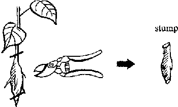 Stumps (also called root-shoot cuttings) should be 20-25 cm, about 80% root and about 20 % shoot. The diameter at the base of the stem should be between 1 and 3 cm. Stumps should be planted in a vertical position, with the root collar just at ground level.