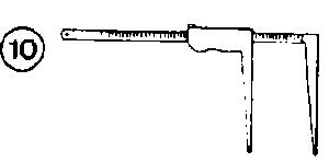 made from metal, is very convenient for cross-cutting and felling. It can be carried in the pocket and should be inserted in the saw cut as a measure of precaution before the saw cut closes. |