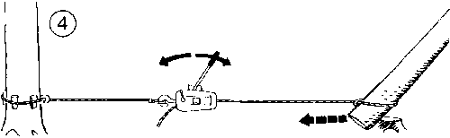- Use a manual winch to pull the tree backwards (4). A pulley may help to increase the pull or to place the winch in a safe position, if necessary.
