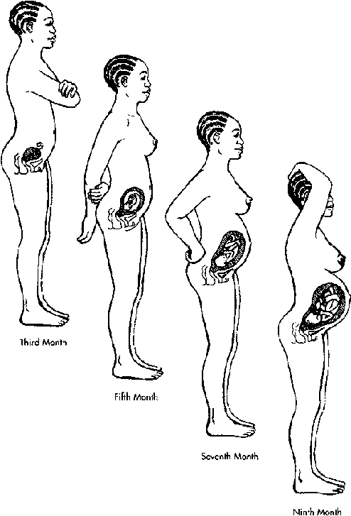 Human beings grow faster during the time in the womb than at any other time in life (see Figure 4.5). By the time the first period is missed, about two weeks after fertilisation, the new baby, called an embryo, already measures one-quarter of an inch (more than one-half centimetre). A bag of water has formed around the embryo and will protect it from bumping and external injury until birth. By the second missed period, the embryo is only about one inch (2½ centimetres) long, but the bones, muscles, nerves, eyes, ears, and major blood vessels can be identified. The heart is already beating and the liver, kidneys, and stomach have been formed, although they are not yet working.