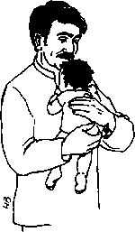 Helping the baby burp (wind) When some babies suckle they swallow air, which can make them uncomfortable. You can help a baby bring this air up if you hold it on your shoulder or chest and rub its back, or rub its back while it sits or lies on your lap.