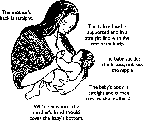 These are signs that something may be wrong with how you are holding the baby, or how much breast the baby has in its mouth: · If the baby is restless, cries, or does not want to feed, it may be in an uncomfortable position. · If you feel pain, or get a cracked nipple, you may need to help the baby get the nipple farther back in its mouth. |