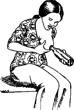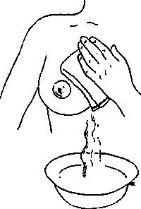 Warm bottle method This method may work best if the breasts are too full or very painful. This may happen right after birth, or if a woman gets a cracked nipple or breast infection. 1. Clean a large glass bottle that has a 3 to 4 cm-wide mouth. Warm it by filling it with hot water. Fill it slowly so the bottle does not break. Wait a few minutes and then pour the water out.