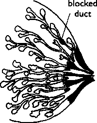 If a painful lump forms in the breast, it may mean that a duct is blocked by thick milk. When milk flow stops in part of the breast, it can also cause mastitis. If a woman has a fever and part of her breast is hot, swollen and painful, she probably has mastitis. It is important to continue breastfeeding so that the duct can empty and the breast does not get infected. The milk is still safe for the baby.