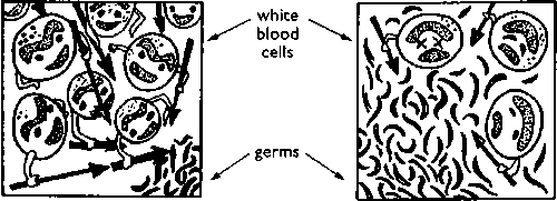 The body has millions of white blood cells that attack germs and fight off infection. |