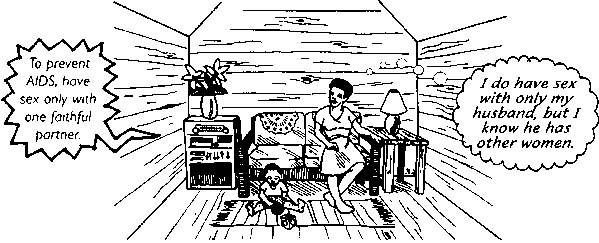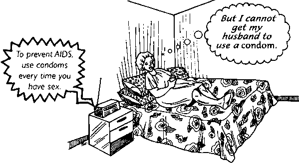 · Use theater and media to help women feel it is OK to know about and to prevent AIDS. For example, use a play or comic book to show that good girls or women can discuss AIDS with their partners, or can buy condoms and ask their husbands or boyfriends to use them.