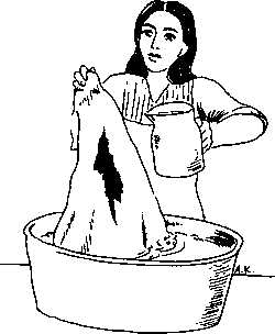 4. Wash soiled cloth and bandages in soap and water, then put them in the sun to dry. Or boil them for a short time and hang them to dry. If the cloths and bandages will not be used again, burn them or throw them in a pit latrine.