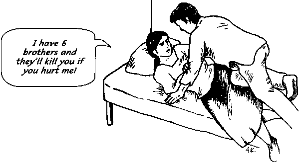 Some people think that forced sex is rape only if the man beats up a woman or leaves her unconscious. They think she must try hard to get away and risk being killed rather than be raped. But even if a woman does not fight back, it is still rape. No matter what she decides to do, if it was not her choice, it was rape, and it is never her fault.