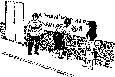 How a community in South Africa organized against rape Early one Saturday morning, a 59-year-old woman was raped and stabbed by a man who had raped other women in the past. The victim pointed the rapist out to the police. He was arrested and the woman was taken to the hospital. But the police released the rapist the same afternoon. He was not charged with rape or assault - he was free. We women of the township were very angry. The police had protected a man who made women afraid to walk alone on the streets. The townships womens organization decided to organize a protest. Most of us work as domestic servants for rich white women who live in a nearby city. So all of us stayed away from our jobs, demanding that the police charge the rapist with rape and assault, before we would go back to work. We also asked the women we worked for to come to speak with us. We wanted to show and tell them about our problems. We know that all women, black and white, fear rape. We felt the white women might understand and be sympathetic to us. We also wanted the women whose husbands worked for the police to explain our problems to their husbands and how bad it was for them to release a violent rapist back into the township. But the white women were not sympathetic - they just got angry. We think they were upset because they had to do their own housework. When the Employers Federation came to see about the protest, we told the men, Please do not speak for us. This is a womens problem. Men do not get raped. The Employers Federation would not meet with us, but after a week, a group of white women came to talk to us. We showed them around the township, and they decided to meet with us again. We called off the protest, even though the rapist was only charged with assault, and not rape. But people in the township were so angry that the rapist could no longer live there. The police arrested several of us who had organized the protest. They did not believe that women had organized the protest. They think men are behind everything that women do. But we women had become very strong. It is very important to talk openly about the problem of rape. Most people dont talk about rape - they feel ashamed and shy. Often the family of the raped girl or woman does not want to talk about it. But here it is different. We started organizing in the community for education, child care, pensions, and so on. We started talking about all the problems and things that we need to change. So we talk about rape, and any sexual assault on a woman. People now see sexual assault as another kind of oppression. Men and women think the same about this; we are united in the struggle. A raped woman is trusted. If she says she was raped, we support her, no matter who she is. Even if she is a drunkard, a rape is still a crime against her. In fact, it is worse because she was in a weak position. Our women and men do not blame a woman for a rape. We do not say that the rape was the womans fault. So women can talk about sexual violence openly and they will get community support.