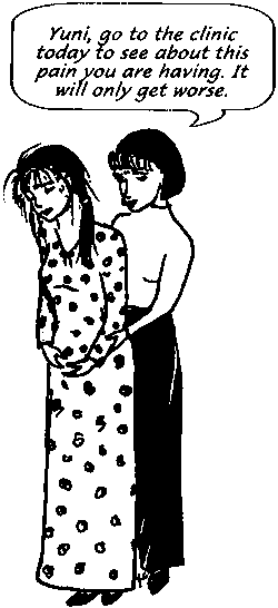 ¨ Pain should not be a normal part of a womans life - it is a sign that something is wrong. Seek care before you are so ill that you cannot stand, walk, or talk.