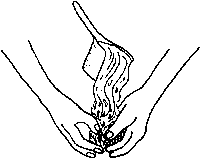 7. Open the folds of the vulva and wipe the opening with a sterile cotton cloth made wet with soap and clean water or with a solution of I teaspoon of povidone iodine to I cup of clean water.