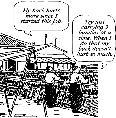 · Get someone to help you lift heavy objects. It may seem quicker to lift something by yourself. But later on you may lose time because of a back injury.