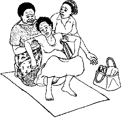 Emergency: If an infibulated girl or woman is giving birth and the baby will not come out (a blocked birth) the scars must be cut so the baby can be born. If possible, this should be done by a trained health worker. But if there is no health worker nearby, wash your hands well with soap and clean water before you begin, and wear clean rubber or plastic gloves or bags on your hands. The cutting tool must be cleaned and disinfected first. If you have to cut someone, get her to a health worker who knows how to repair the cut right after the birth.