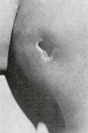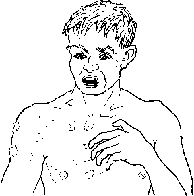 The dirty needle caused an infection that produced a large, painful abscess (pocket of pus) and gave the child a fever. Finally, the abscess burst as shown in the picture below.