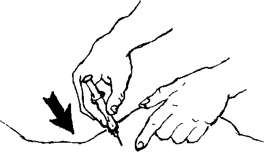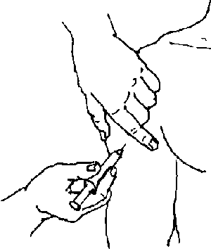 Never use the same needle and syringe to inject more than one person without boiling it again first. Carefully follow all of the instructions for injecting (see following pages).