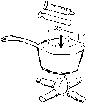 · Boil for 20 minutes. (If you do not have a clock, add 1 or 2 grains of rice to the water. When the rice is cooked, the equipment will be sterile.)· Or steam for 15 minutes in a special pot called a pressure cooker (or autoclave).
